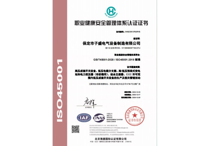 职业健.康安.全管理体系认证证书